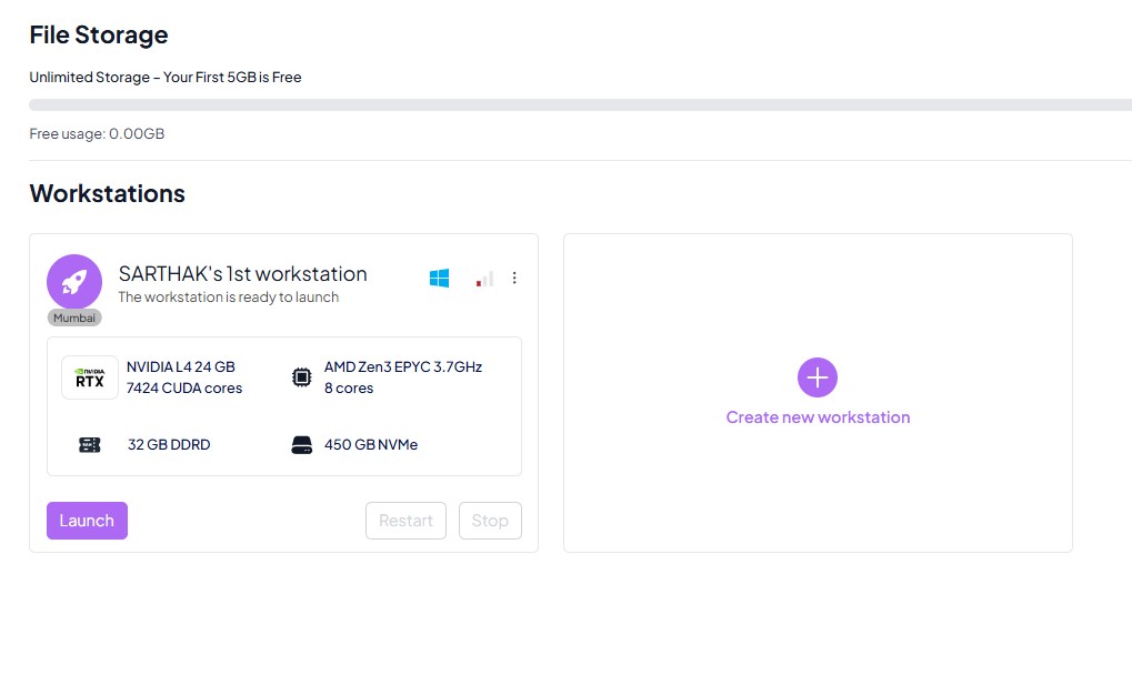 From here, you can easily Launch, Restart, or Stop your workstation as needed.