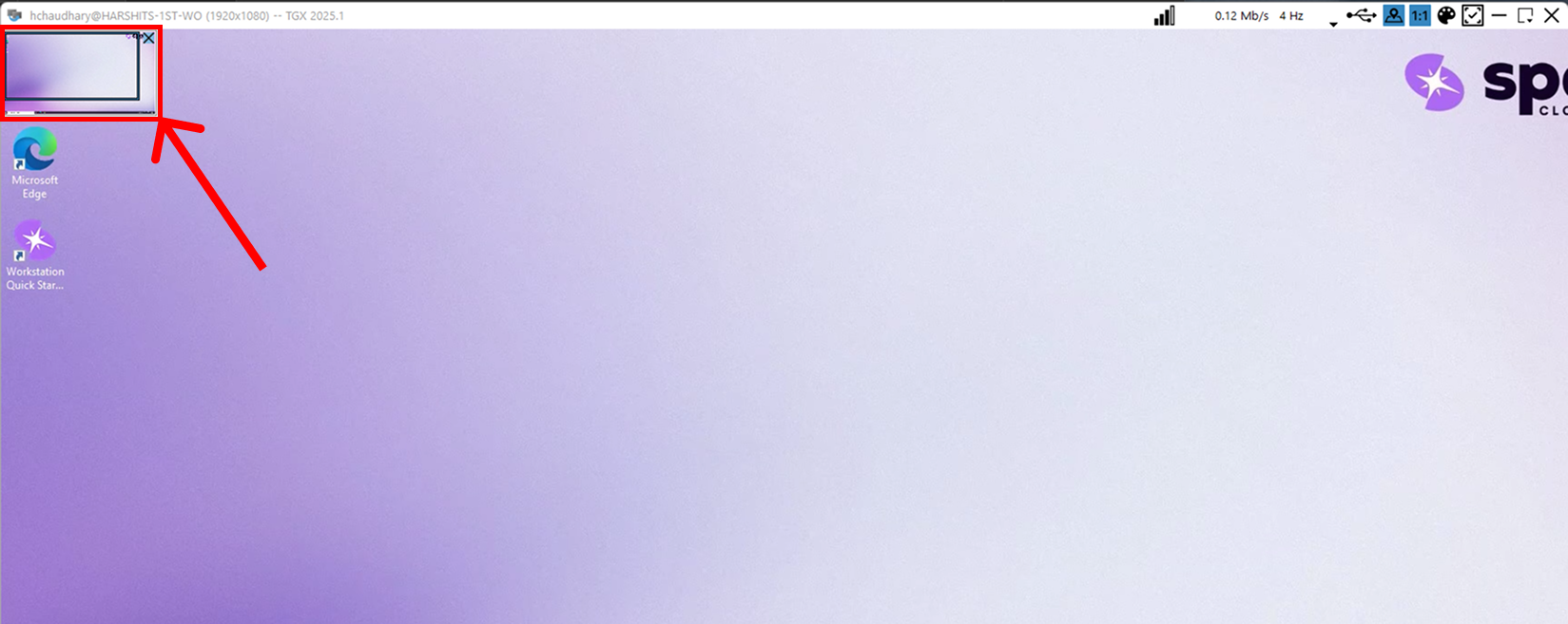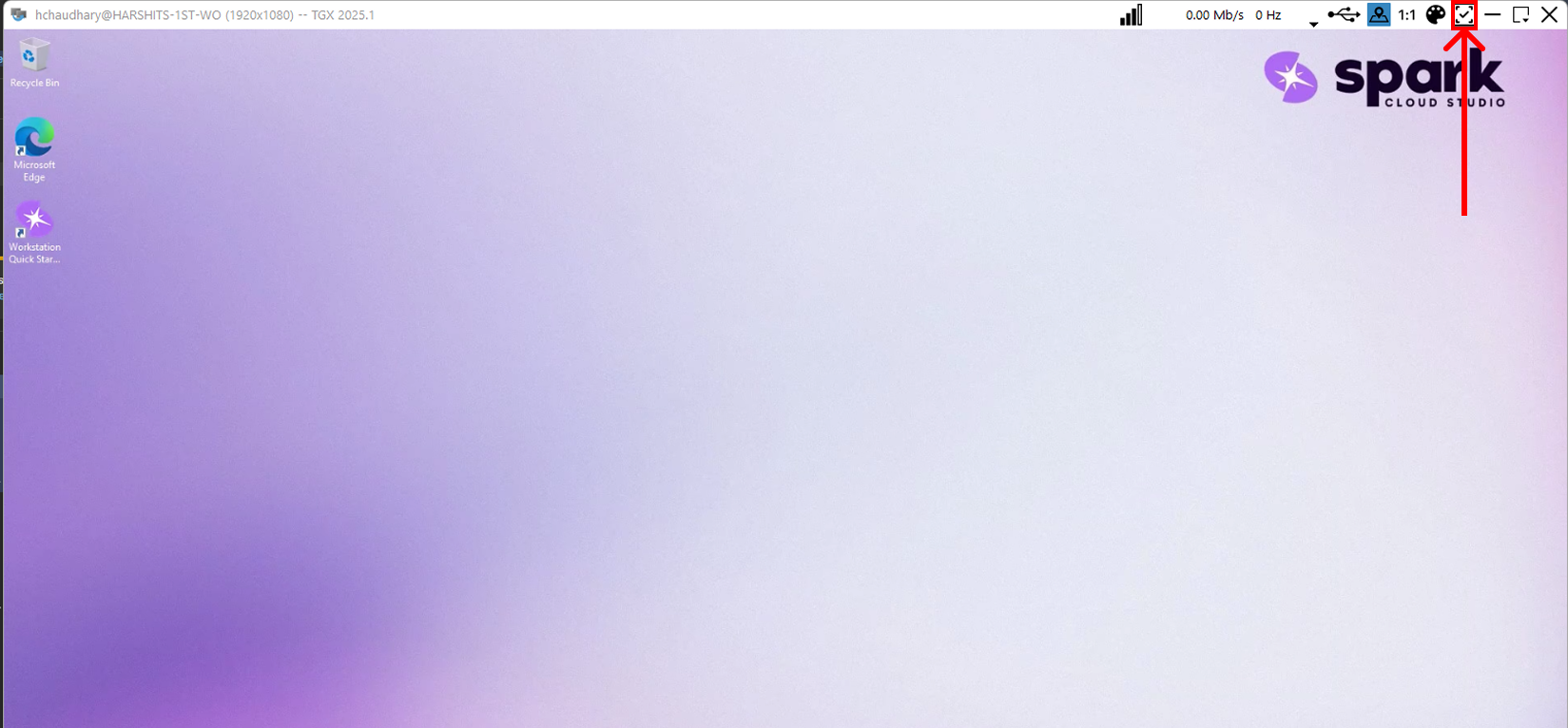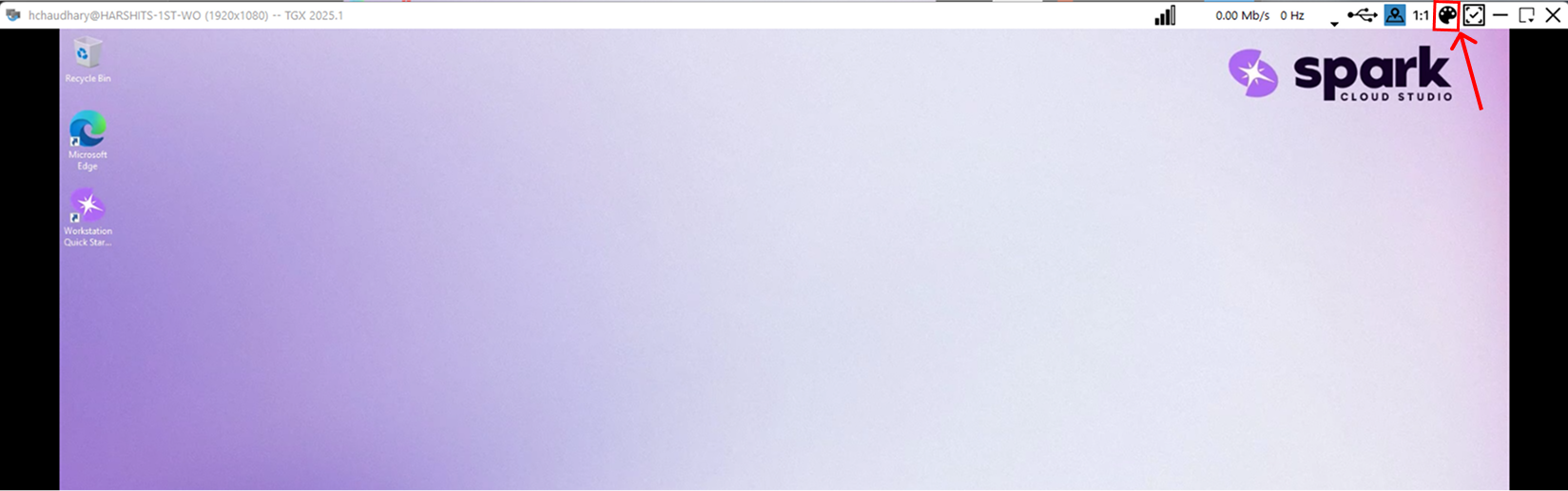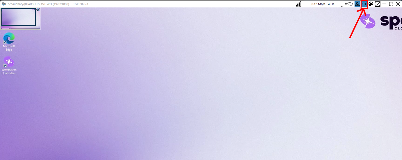 | Performance Monitor (Hz / IQ / Mb/s) | Displays live session statistics: • Hz: Current frame rate of your session. • IQ: Image Quality factor for visual clarity. • Mb/s: Network bandwidth in use. | ![]() |