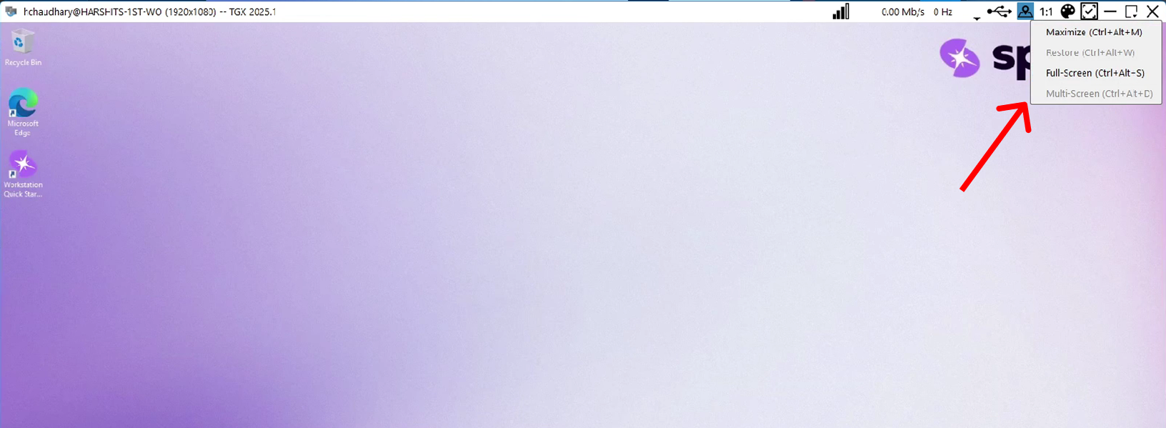 - Disconnect – Ends your TGX connection only. Your workstation remains running, and all applications stay active in the background. You can reconnect later and continue your session.