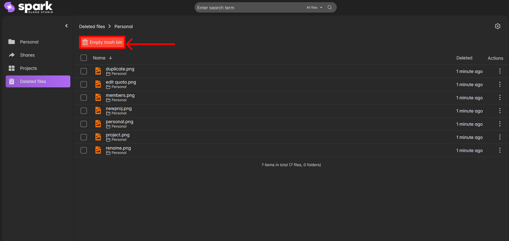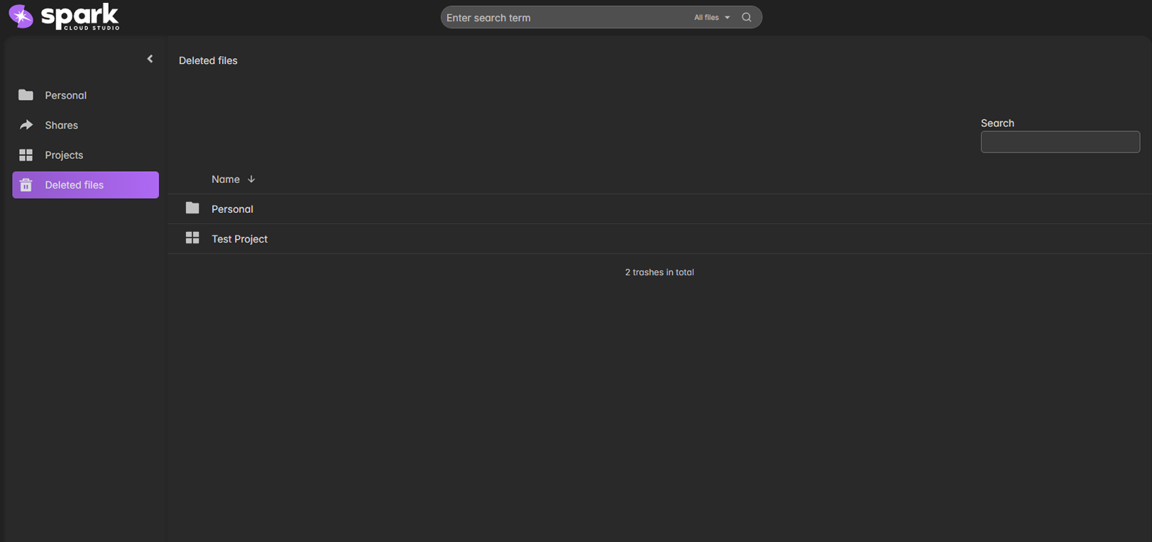 The Deleted Files section acts as your recycle bin for all SparkShareSync resources.