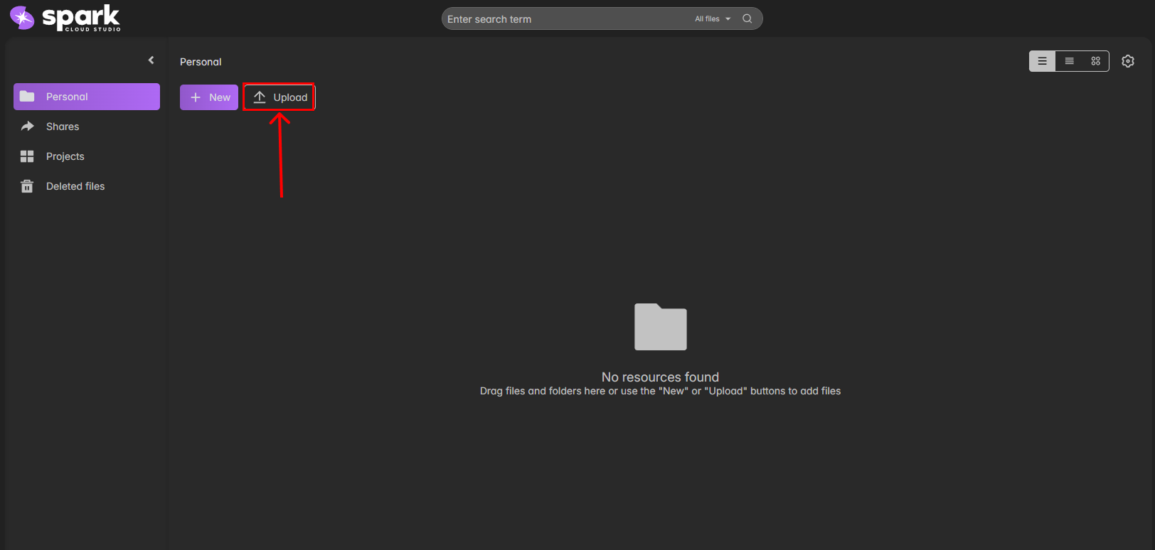 The Personal section in SparkShareSync is your private storage area for files, folders, and project assets.