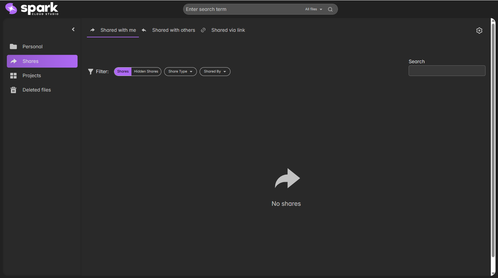 The Shares section helps you manage files shared across users — whether shared with you, by you, or via links.